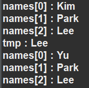 System.out.println("names[" + i + "] : " + names[i]);